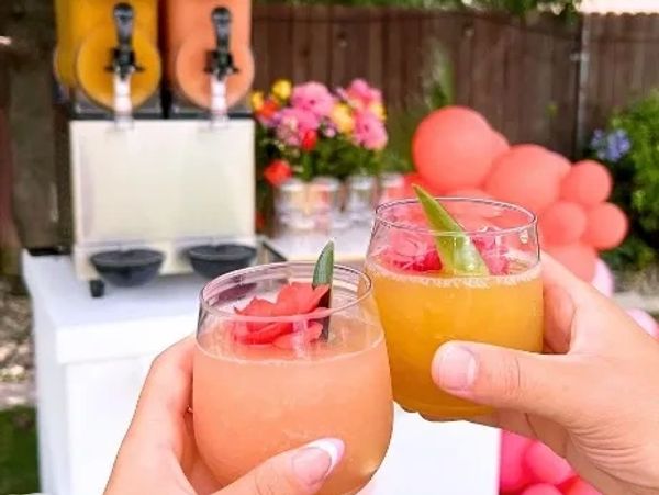 Enjoy up to 90 servings (9 oz cups) of our signature frozen cocktails, complete with custom event signage, themed décor, and a bartender-style garnish setup for that elevated touch.