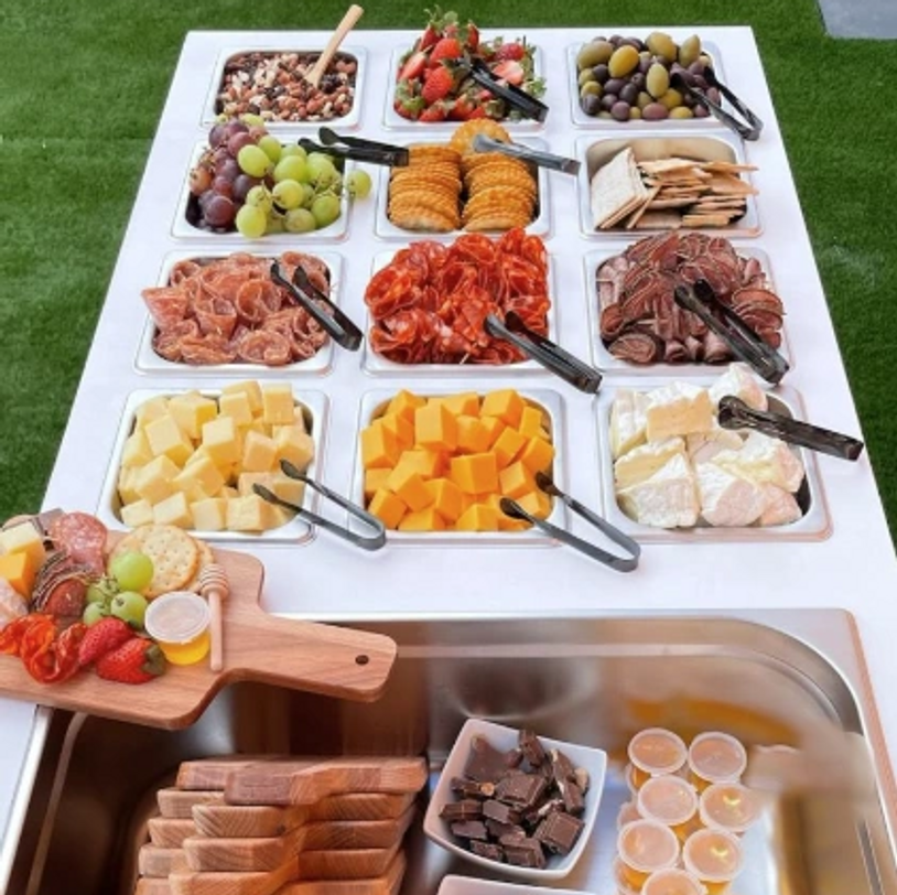Whether it’s a wedding, birthday, or corporate mixer, our charcuterie cart will feature a beautiful spread of artisan cheeses, cured meats, fresh fruits, dips, and crackers, all artfully displayed and ready for your guests to enjoy.